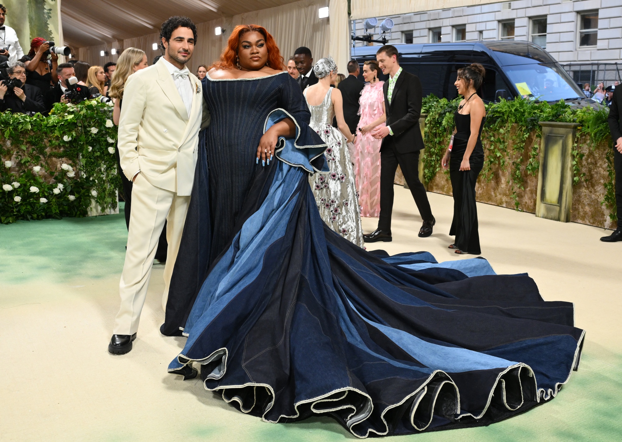这件礼服的雕塑式上衣灵感来自于18世纪的历史晚礼服,但整体造型却非常现代。Gap不仅以牛仔布而闻名,而且这种面料正享受时尚时刻。宽腿牛仔裤的回归以及由法瑞尔·威廉姆斯为路易威登的秀和碧昂丝的 Cowboy Carter 专辑所流行的西部风格,使牛仔布成为最热门的趋势之一。