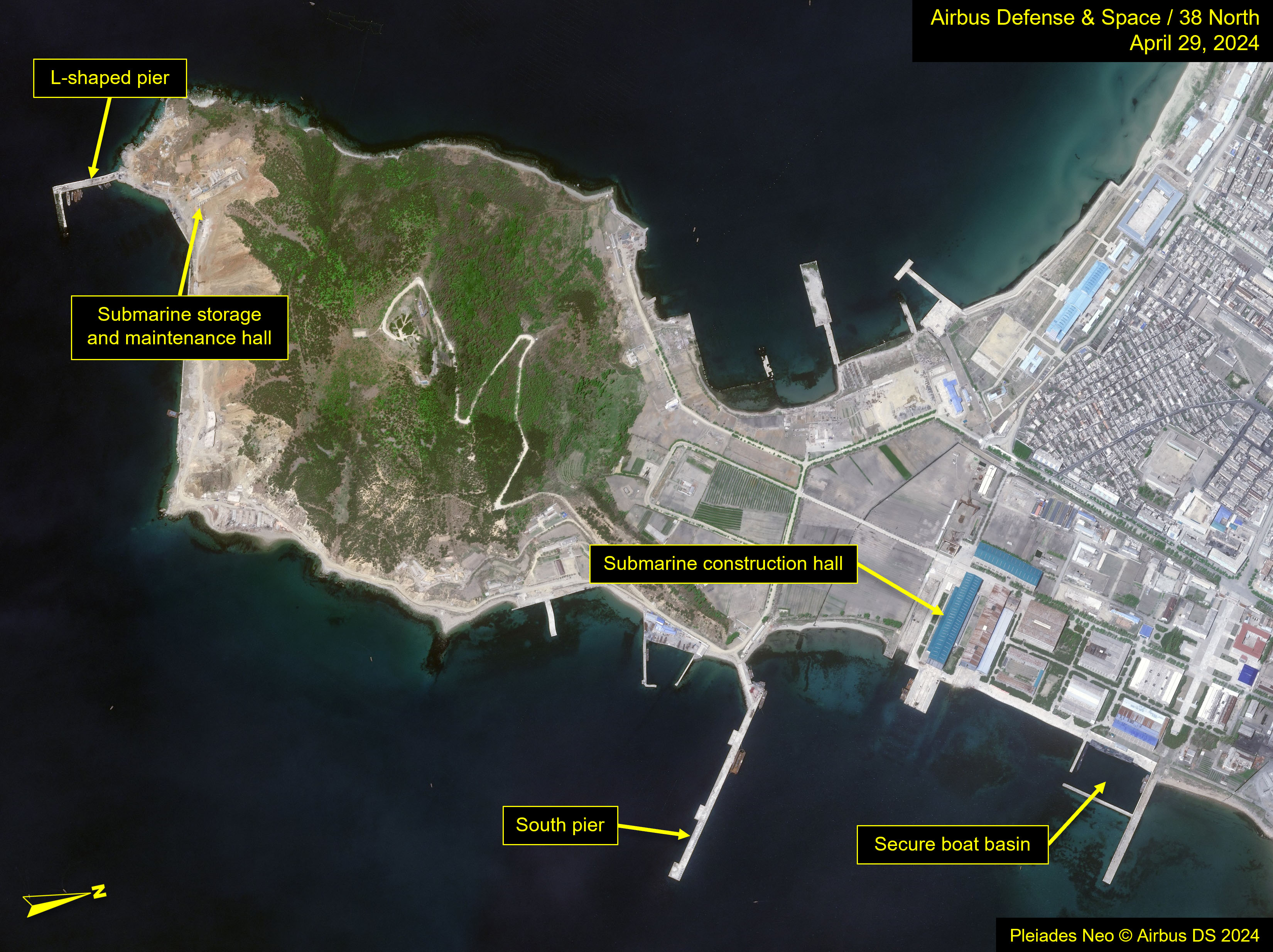 卫星图像显示,朝鲜已开始建造一艘新潜艇,研究小组的报告称,金正恩呼吁增强其从海底发起核攻击的能力。