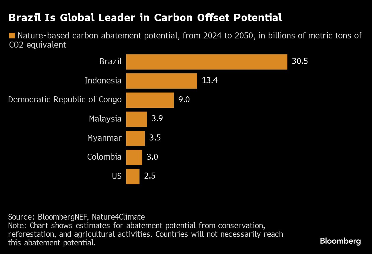 巴西巴伊亚州的re.green重新造林项目。来源:re.green热带气候和广阔的退化农田使巴西能够大规模种植快速生长的森林。到2050年,该国将能够累计抵消305亿吨二氧化碳当量,成为世界上碳减排潜力最大的国家,通过避免砍伐、重新造林和可持续农业,依据BloombergNEF的报告。