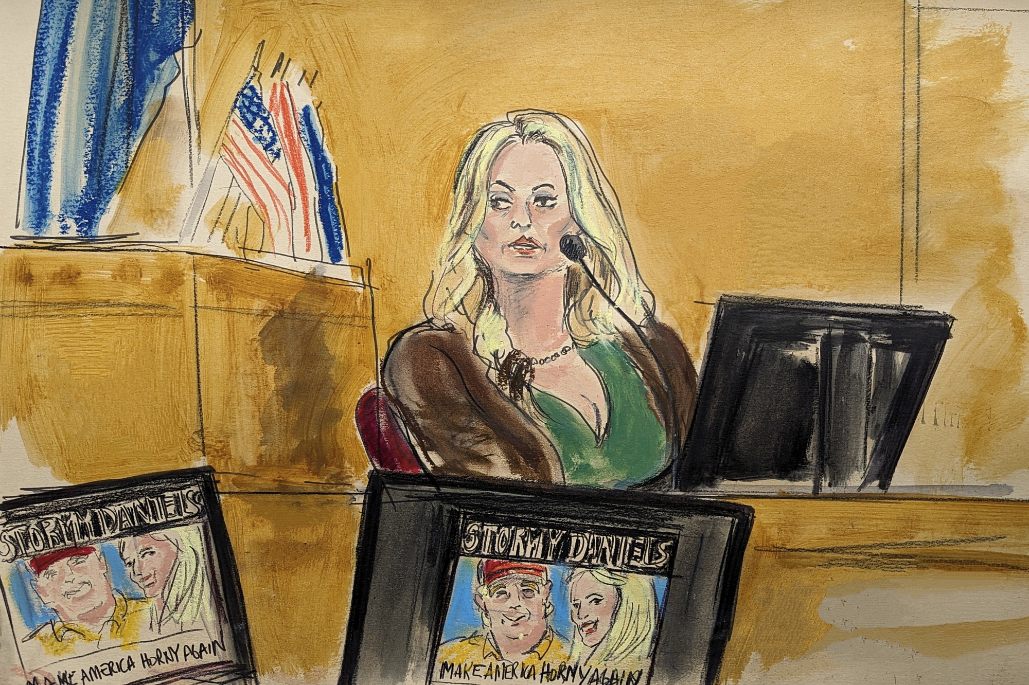 这位成人影片明星被广泛询问关于她在线销售与前总统相关的商品,其中许多将她描绘成一个为打击他而战的英雄。这些商品包括一本售价30美元的“斯托米·丹尼尔斯政治力量”漫画书和一支售价40美元的“斯托米·丹尼尔斯起诉守护圣人祭坛蜡烛”,其图像被风格化为文艺复兴时期的画作。