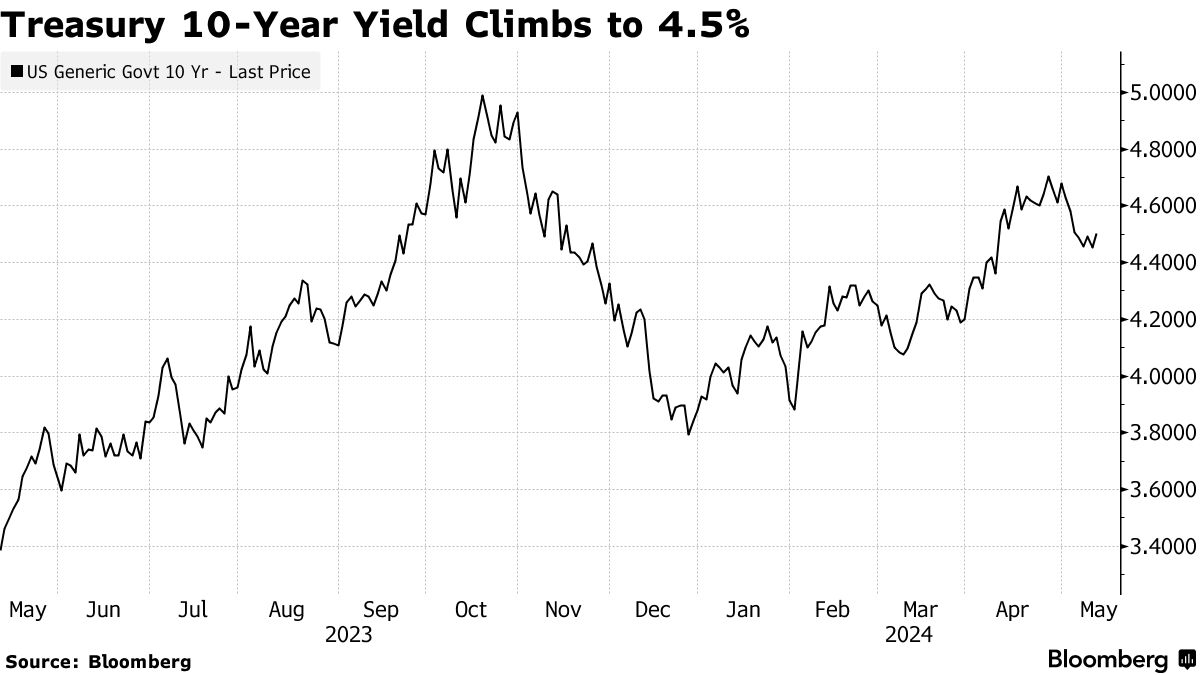 美联储主席杰罗姆·鲍威尔在中央银行4月30日至5月1日会议后表示,政策制定者可能会在一段时间内保持高利率。他还表示,他没有看到“滞涨”的增长或通胀问题。