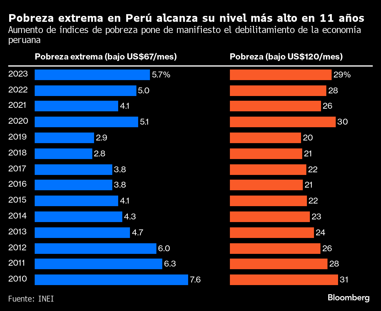 根据INEI,秘鲁的极端贫困达到11年的最高水平 - 彭博社