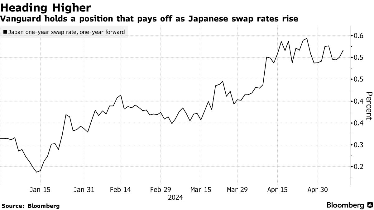 拥有超过1.6万亿美元主动管理资产的先锋集团,押注短期 掉期利率 上升,并因预期日本央行将缩减量化宽松而做空日本国债期货。在多年购买后,日本央行拥有全国政府债券市场的一半以上。