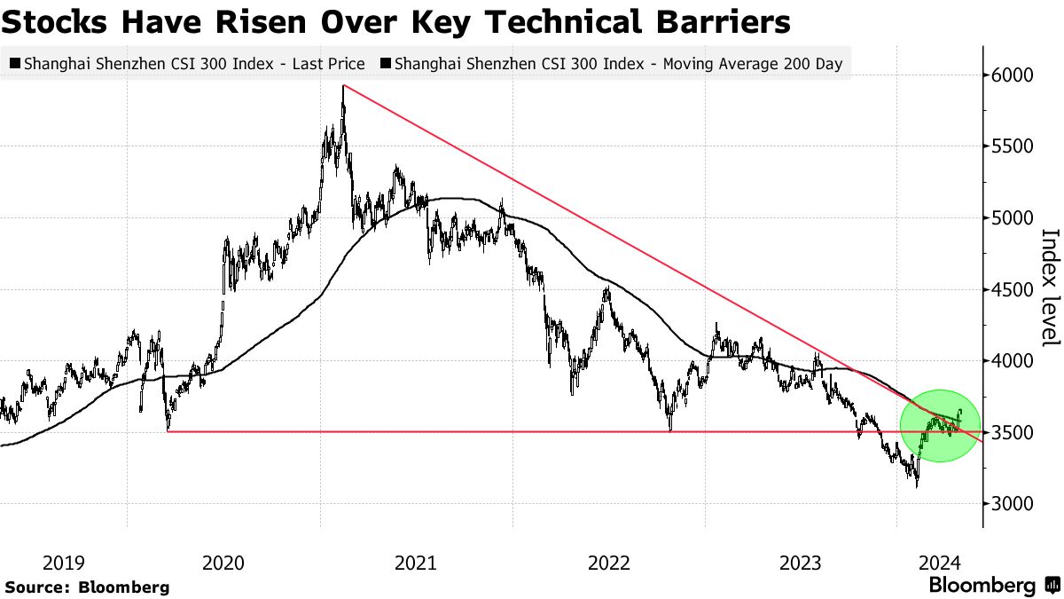 基准CSI 300指数自2月份的低点以来已经上涨,突破了几个关键阻力位,同时海外投资者开始回归该国股票,分析师也提高了对公司利润的预测。