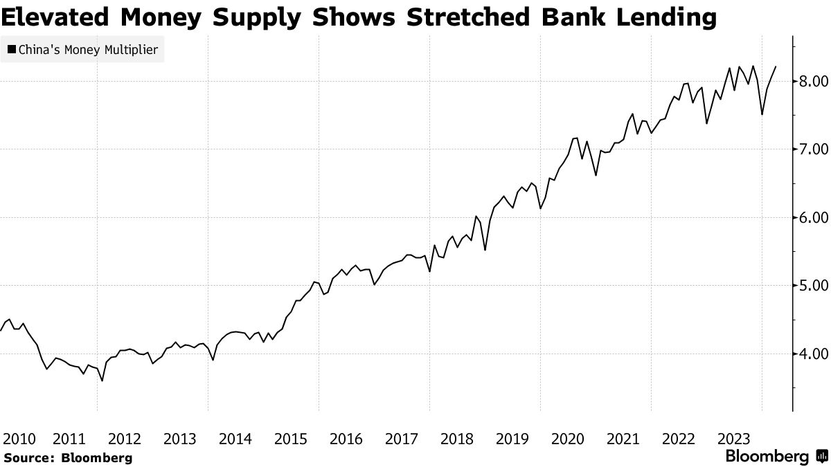 中国传统的做法是增加银行可贷款的现金,但据澳新银行称,这种做法在资本市场上的传导效果较差,如股市暴跌和IPO受阻所示。尽管中国的所谓货币乘数(即人民银行创造的基础货币与流通中货币之间的比率)仍然高达8倍左右。