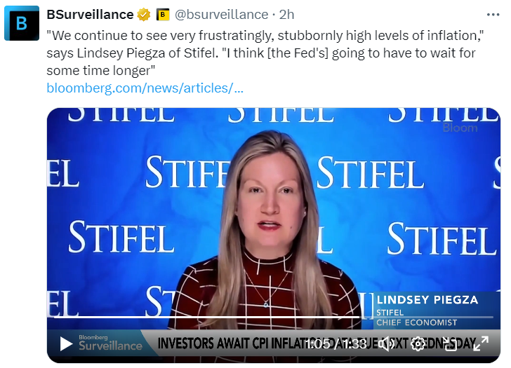 下周的CPI数据可能会检验这种观点。斯蒂费尔的林赛·皮耶加表示,她预计会再次失望,通胀将保持在“顽固的高位”。