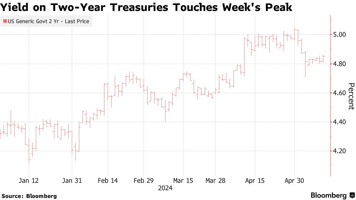 美国两年期国债收益率上升至本周最高水平,引发通胀焦虑-彭博社