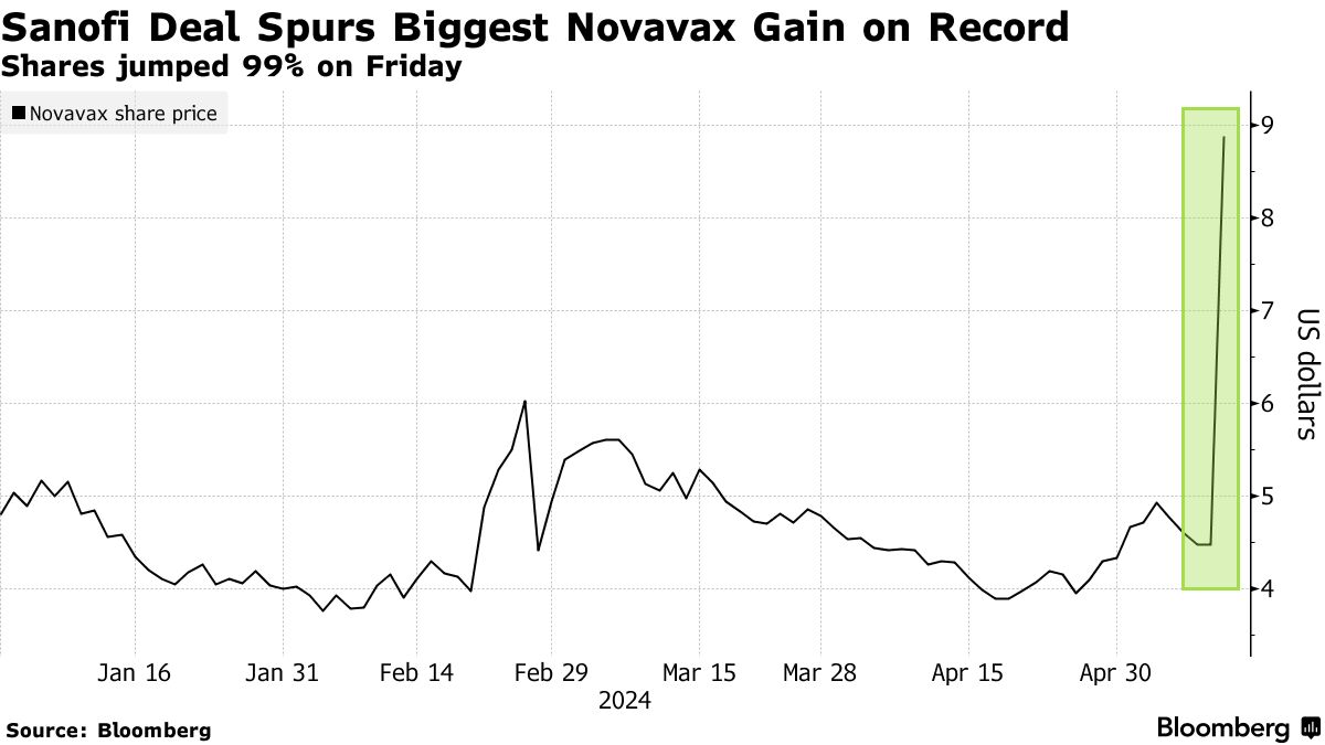 这家疫苗制造商的股票在周五飙升了99%,因为该公司签署了一项价值12亿美元的许可协议,与赛诺菲合作,包括商业化联合的Covid-19和流感疫苗。这一举措提升了在交易前已下跌约99%的股票,该股票自2021年峰值以来因需求减弱而大幅下滑。