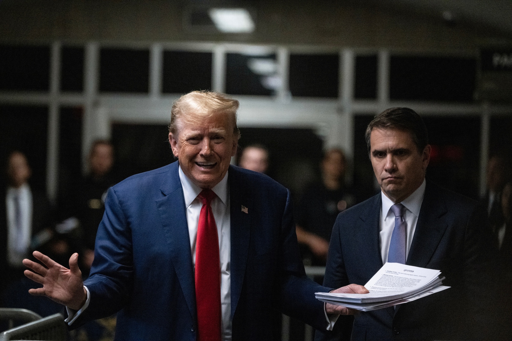 唐纳德·特朗普在5月10日于纽约曼哈顿刑事法院对媒体成员发表讲话。摄影师:Victor J. Blue/The Washington Post/Bloomberg### 特朗普作为前总统是否免于起诉?