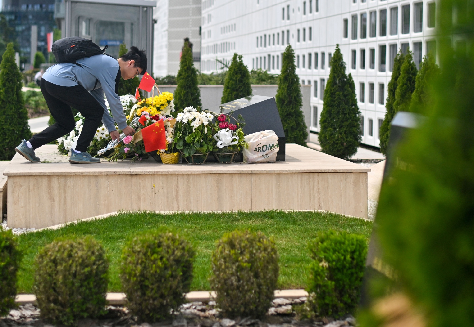 一位游客在塞尔维亚贝尔格莱德前中国大使馆遗址的纪念碑上献花,迎接习近平的国事访问,时间为5月7日。摄影师:奥利弗·布尼克/彭博社 自“游客税”以来,成千上万的购物者从伦敦转向欧盟