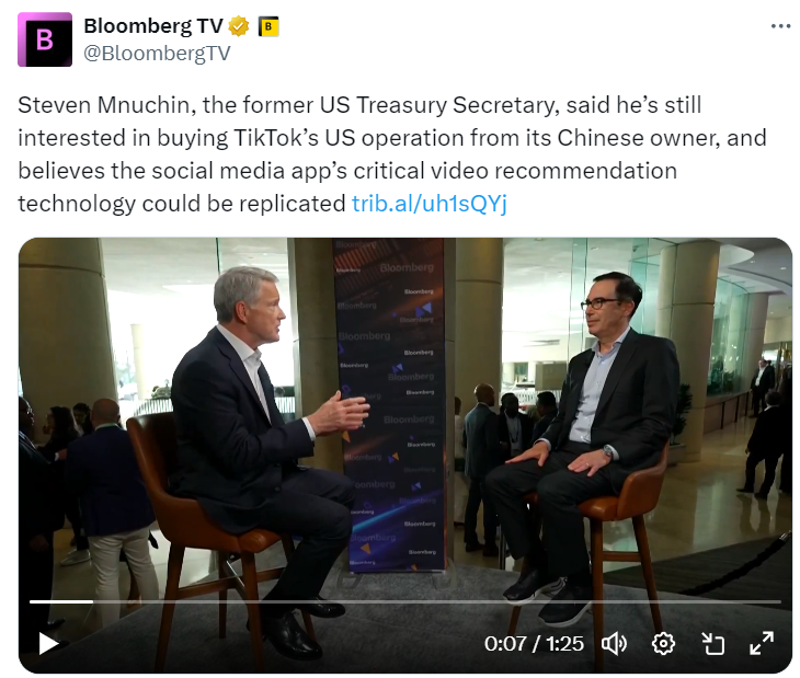 欢迎来到华尔街周刊通讯,为您提供来自我们与全球华尔街一些最佳思想者在彭博电视上的对话中的投资思考。我是大卫·韦斯廷,本周在米尔肯研究所,我们与前众议院议长保罗·瑞安讨论了2024年选举,前财政部长史蒂文·姆努钦关于他对TikTok的兴趣,以及阿波罗的马克·罗恩和星木资本的巴里·斯特恩利希特关于大学校园动荡的看法。 如果您还不是订阅者,请在这里注册以获取此通讯和来自彭博监测的每日市场分析。
