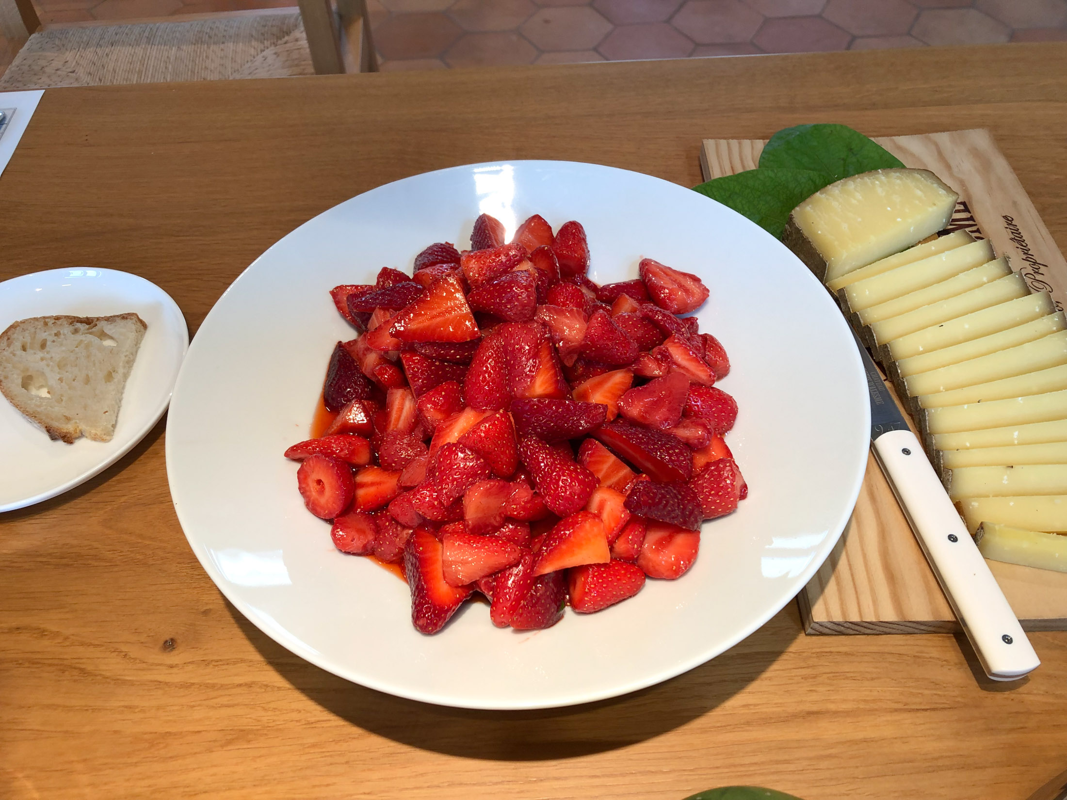 草莓和奶酪在Château Marquis d’Alesme的La Table de Nathalie吸引着人们,旁边是它的品酒室。摄影师:Elin McCoy/Bloomberg晚餐是品尝陈年佳酿的时刻。在一次亲密的酒商晚宴上,我们玩了一个猜测游戏,试图命名五款酒的年份和标签。我准确猜出了来自加利福尼亚纳帕的那一款,但未能识别出辛辣、感性、绝妙的1982年Cheval Blanc,这是我旅行中喝过的最好的酒之一。