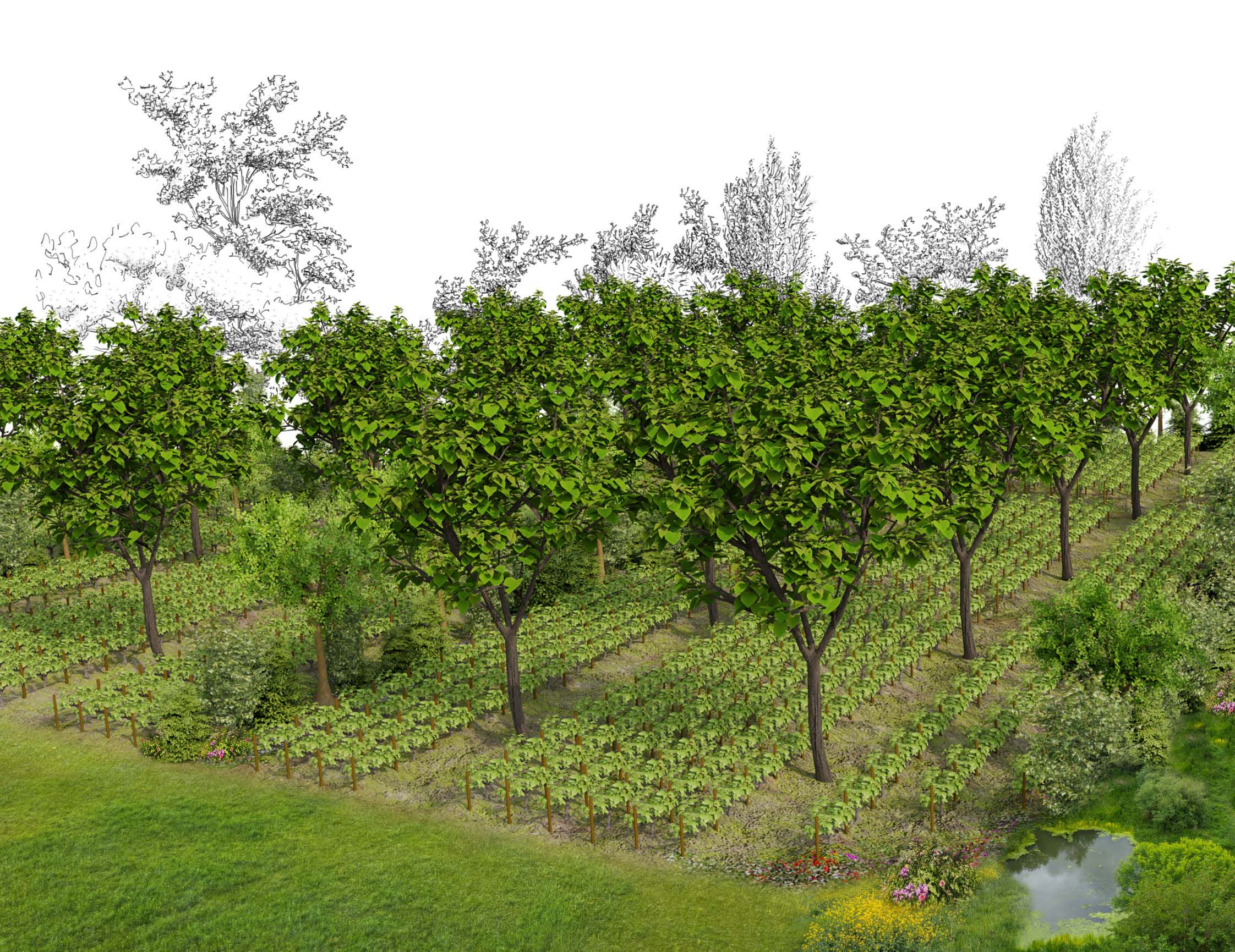 **葡萄园中的树木是未来。**农业林业在波尔多并不完全新鲜,但 拉里维特·奥布里昂酒庄在佩萨克-雷奥尼昂正在将其提升到一个新水平。