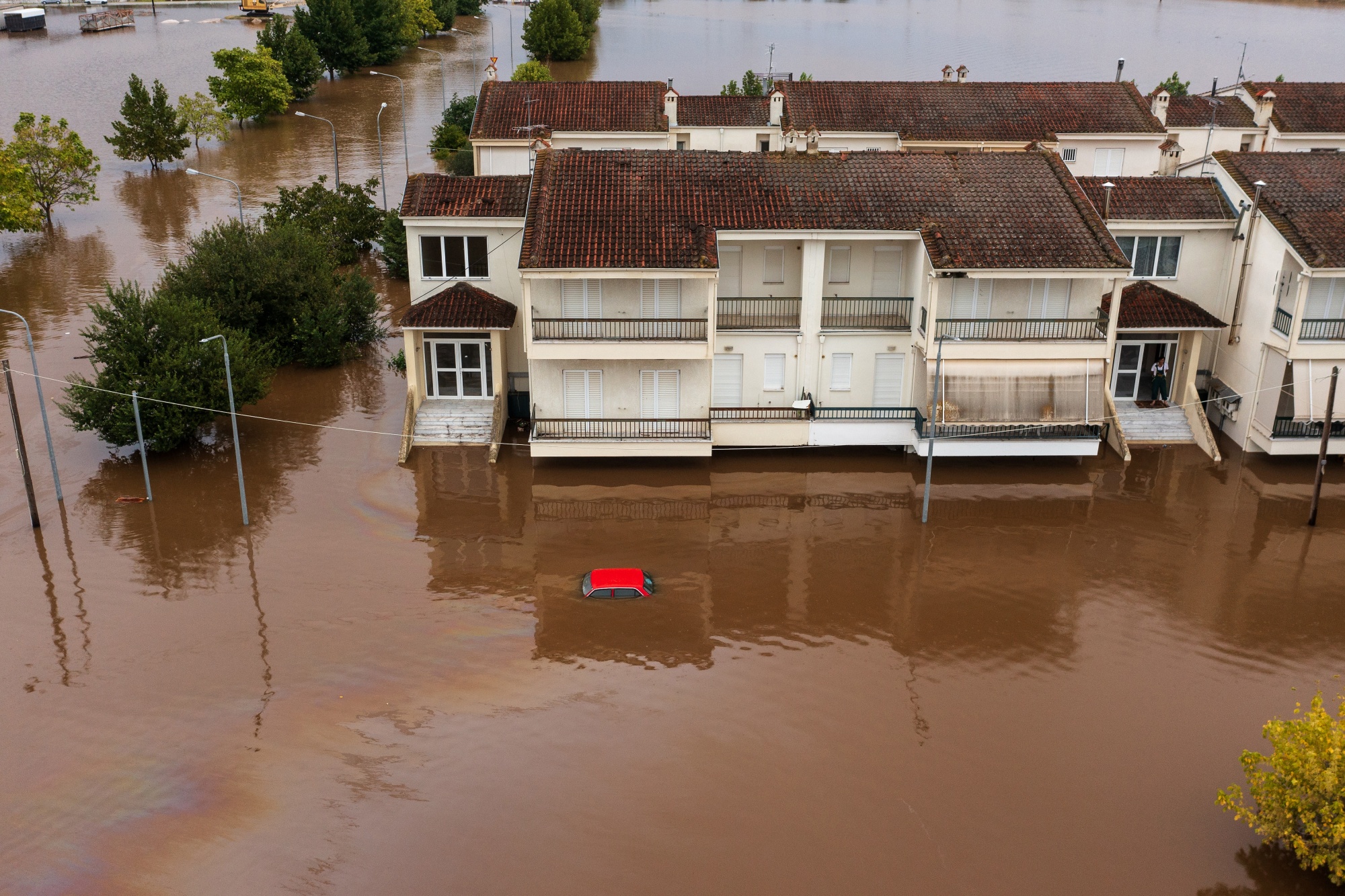 2023年,希腊法卡多纳因丹尼尔风暴造成的暴雨而淹没的房屋。