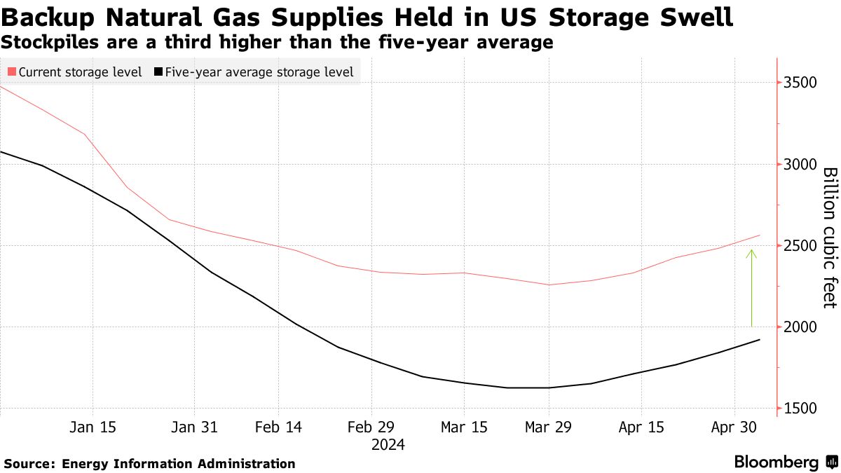 由于一个异常温和的冬季削弱了需求,美国天然气的储存量比五年平均水平高出超过33%,进入夏季。交易员们在等待看看这个国家是否会迎来一个炎热的夏季,这将有助于减少储存供应。价格在今年大部分时间里徘徊在四年低点附近,预计季节性温暖的到来使价格有所上涨。