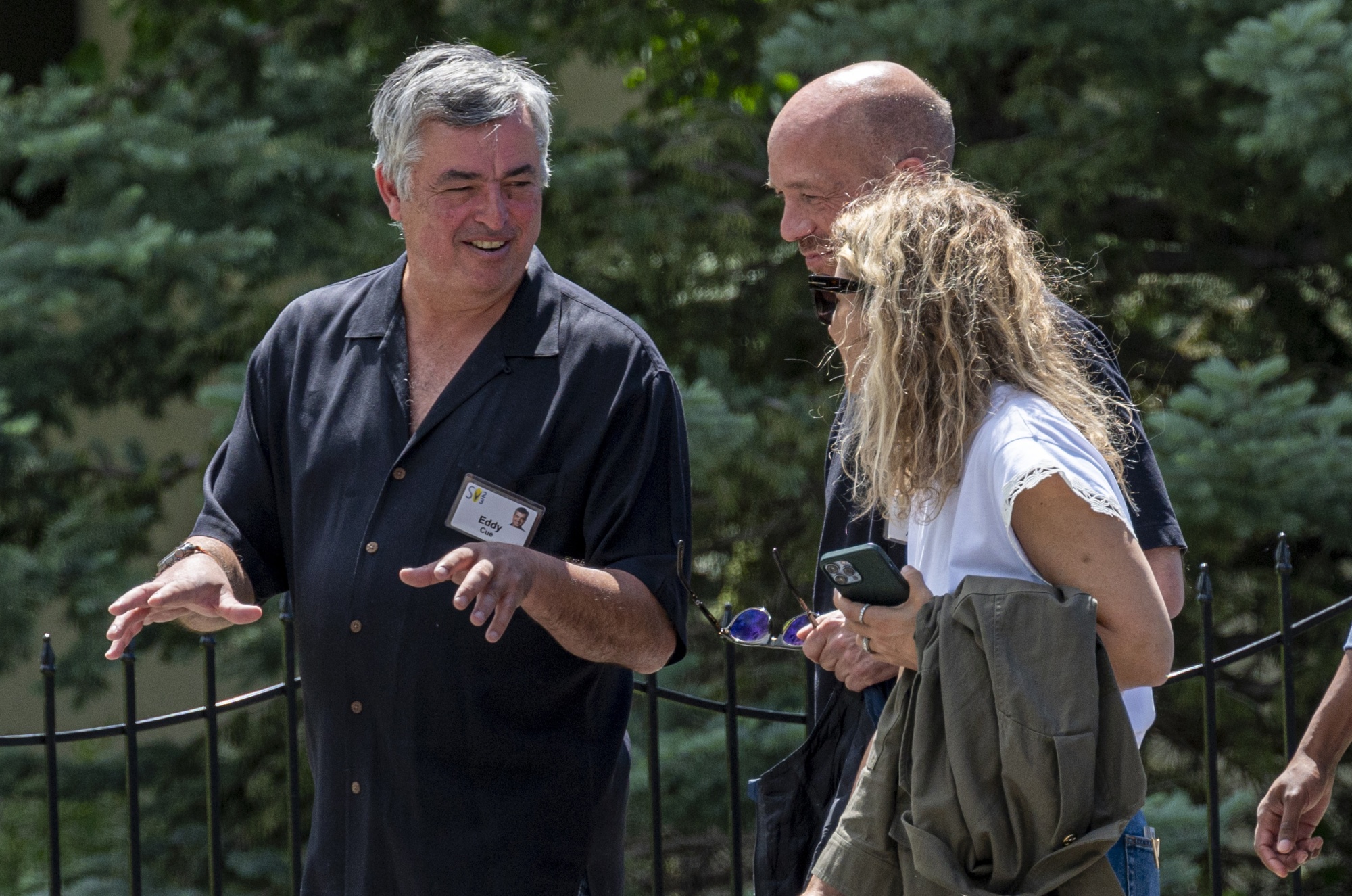 苹果公司服务高级副总裁埃迪·库,左侧,在2023年7月13日星期四于美国爱达荷州阳光谷的艾伦公司媒体与技术会议期间走向午餐。