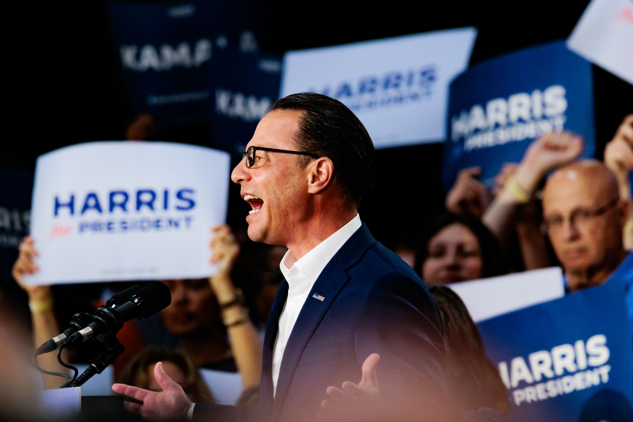 国家的关注随着宾夕法尼亚州州长乔什·夏皮罗抵达费城的集会而增加,费城是该国最重要的摇摆州中最自由的角落。
