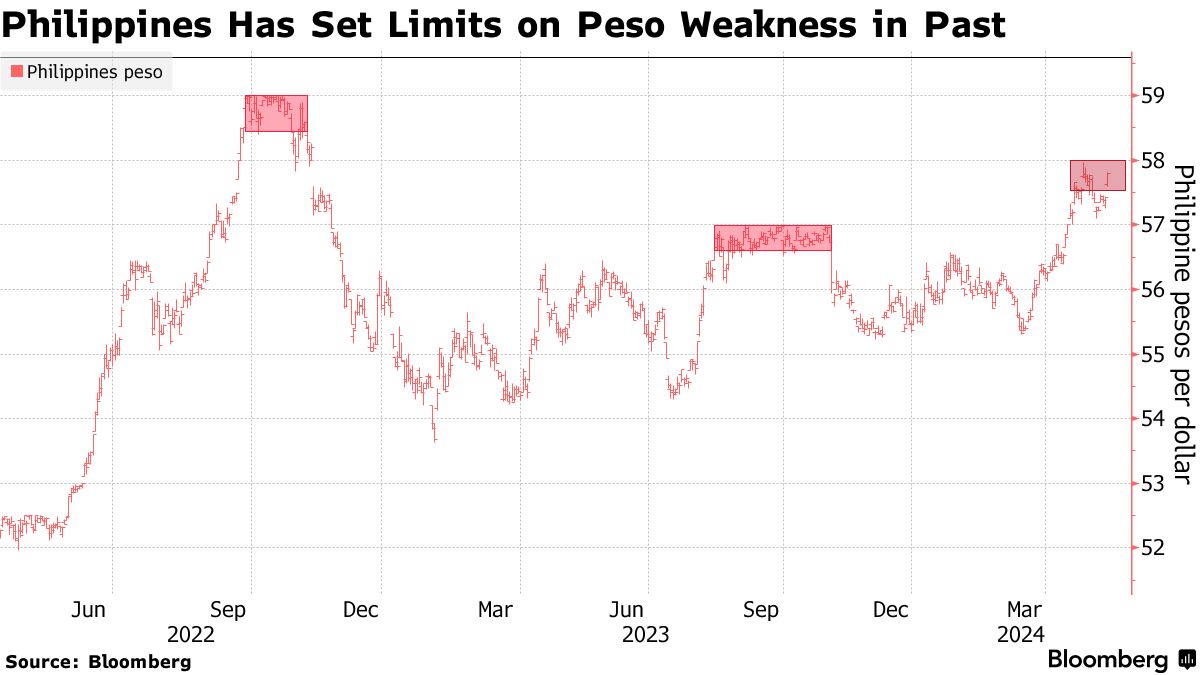 周一,比索兑美元贬值幅度达到0.7%,至57.81,相比之下,印尼卢比和马来西亚林吉特的贬值幅度约为0.2%。这些损失使得该货币更接近于58水平,这一水平被视为中央银行需要捍卫的最新底线。