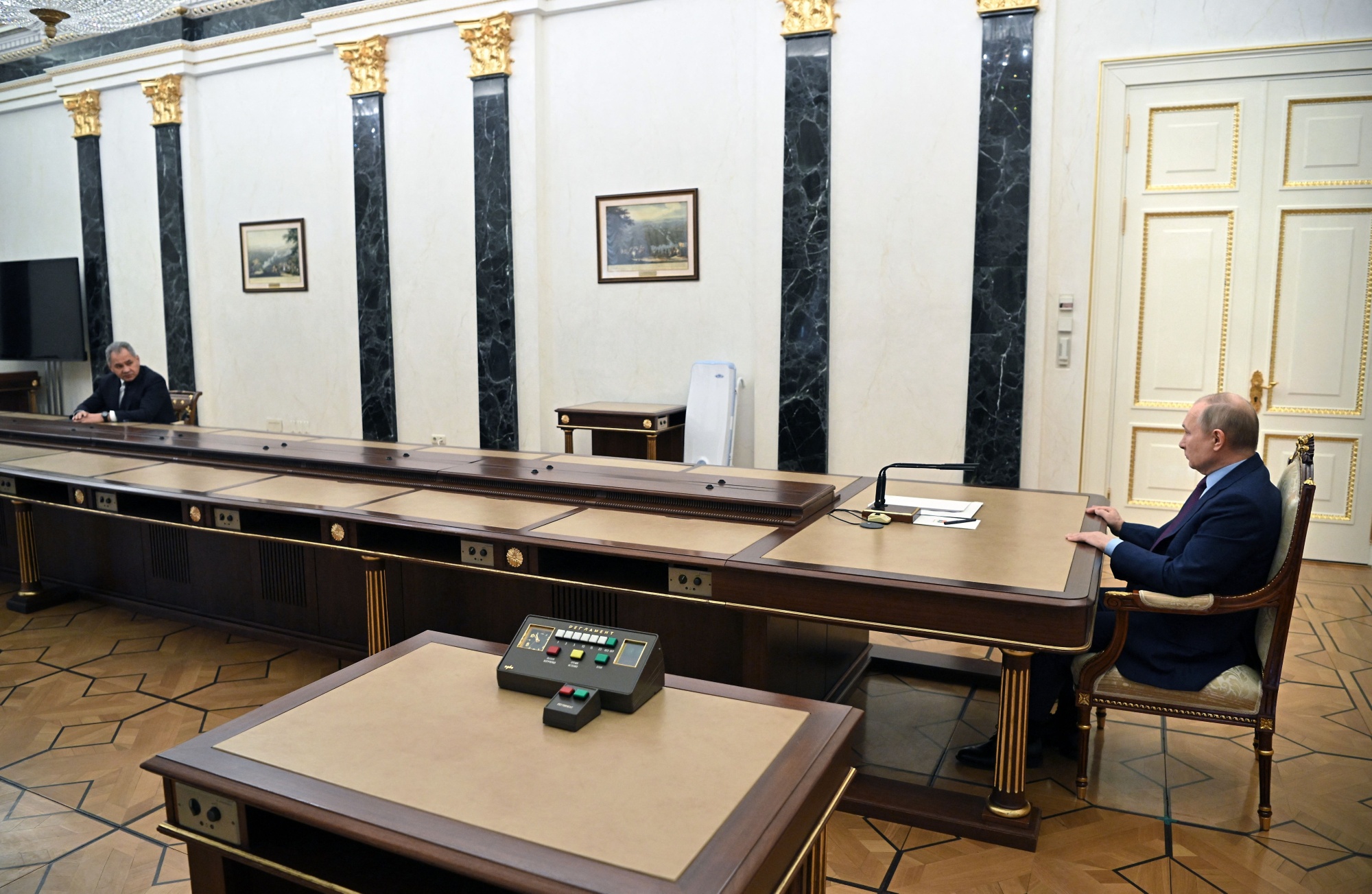 弗拉基米尔·普京(右)于2022年在莫斯科与谢尔盖·肖伊古会面。摄影师:阿列克谢·尼科尔斯基/法新社/盖蒂图片社俄罗斯军队在乌克兰东北部的哈尔科夫地区发起新一轮攻势。乌克兰总统弗拉基米尔·泽伦斯基在周日晚间表示,防御部队在激烈的战斗中坚守阵地,称局势“极其困难”。