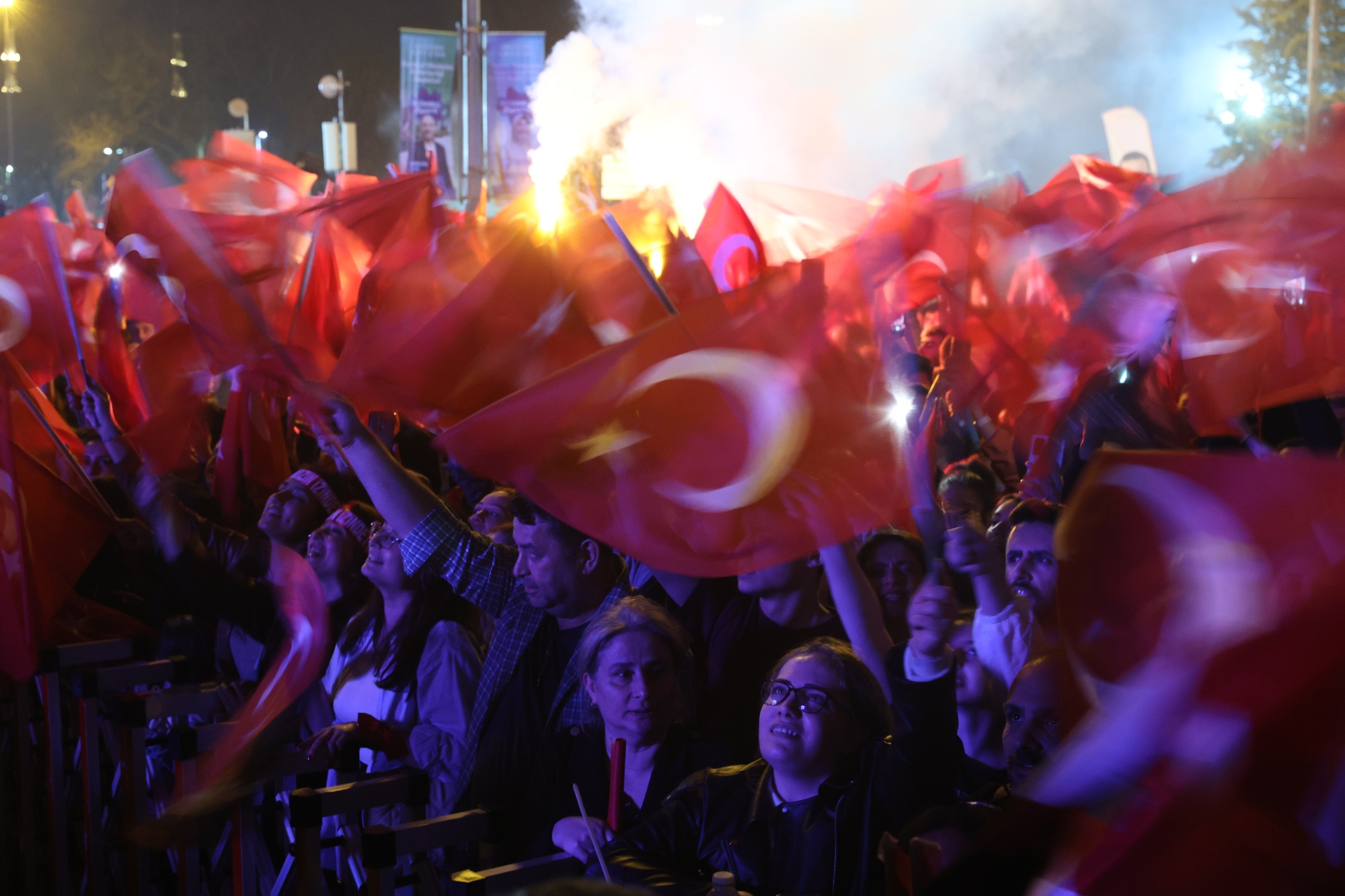 埃克雷姆·伊马莫格鲁的支持者在4月1日伊斯坦布尔的连任庆祝活动中。