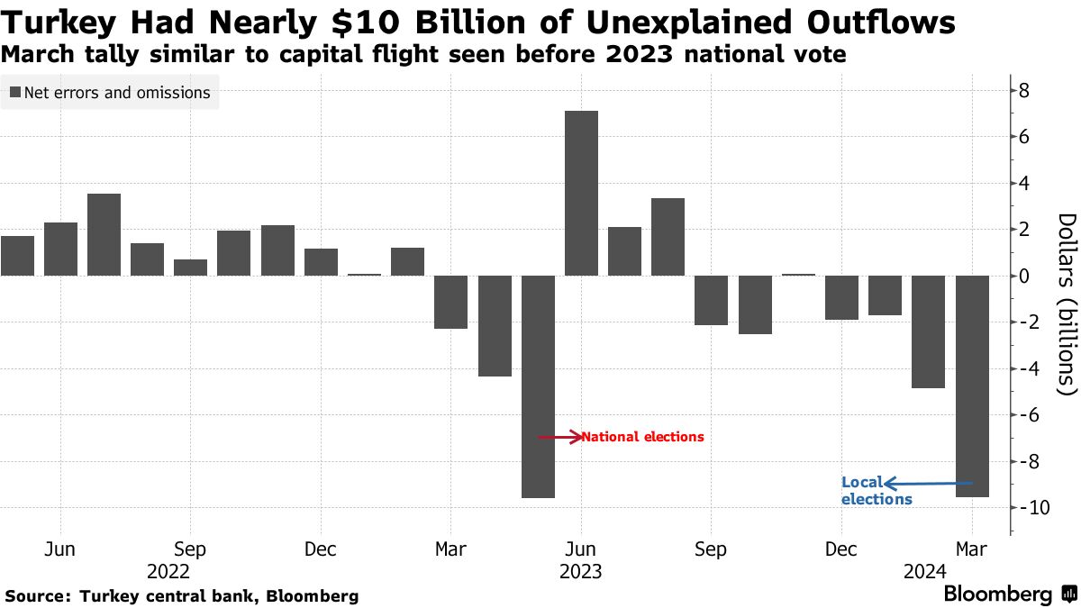 土耳其神秘资金流出在选举月份接近100亿美元 - 彭博社