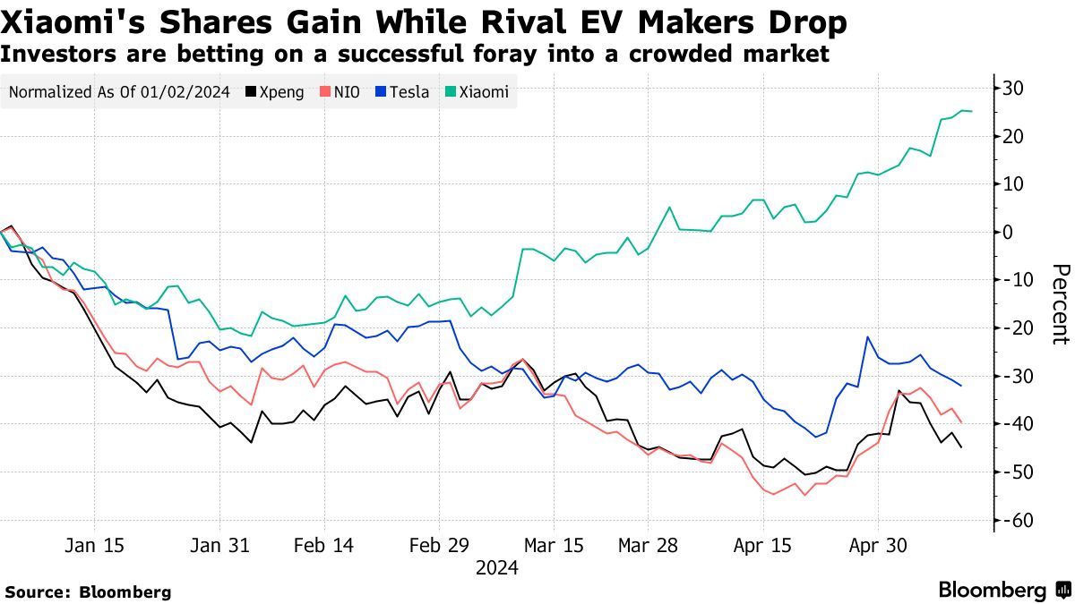 | 小米的成功意味着受挫的中国电动车股票面临更多麻烦小米以29,900美元的SU7系列进入竞争激烈的电动车市场小米推出电动车,力求成为中国的保时捷或特斯拉 |