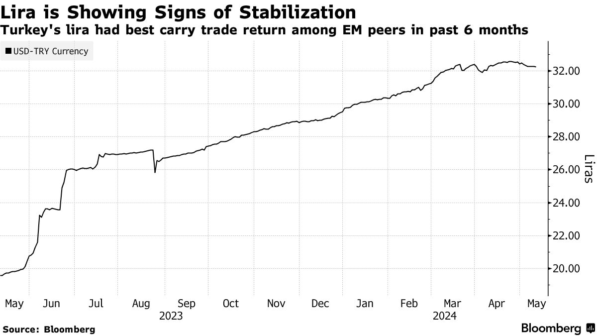 在过去六个月中,以美元借款并投资于土耳其里拉的套利交易是新兴市场表现最佳的交易方式,一些银行家表示,只要保持正统政策并且通胀开始放缓,这仅仅是个开始。