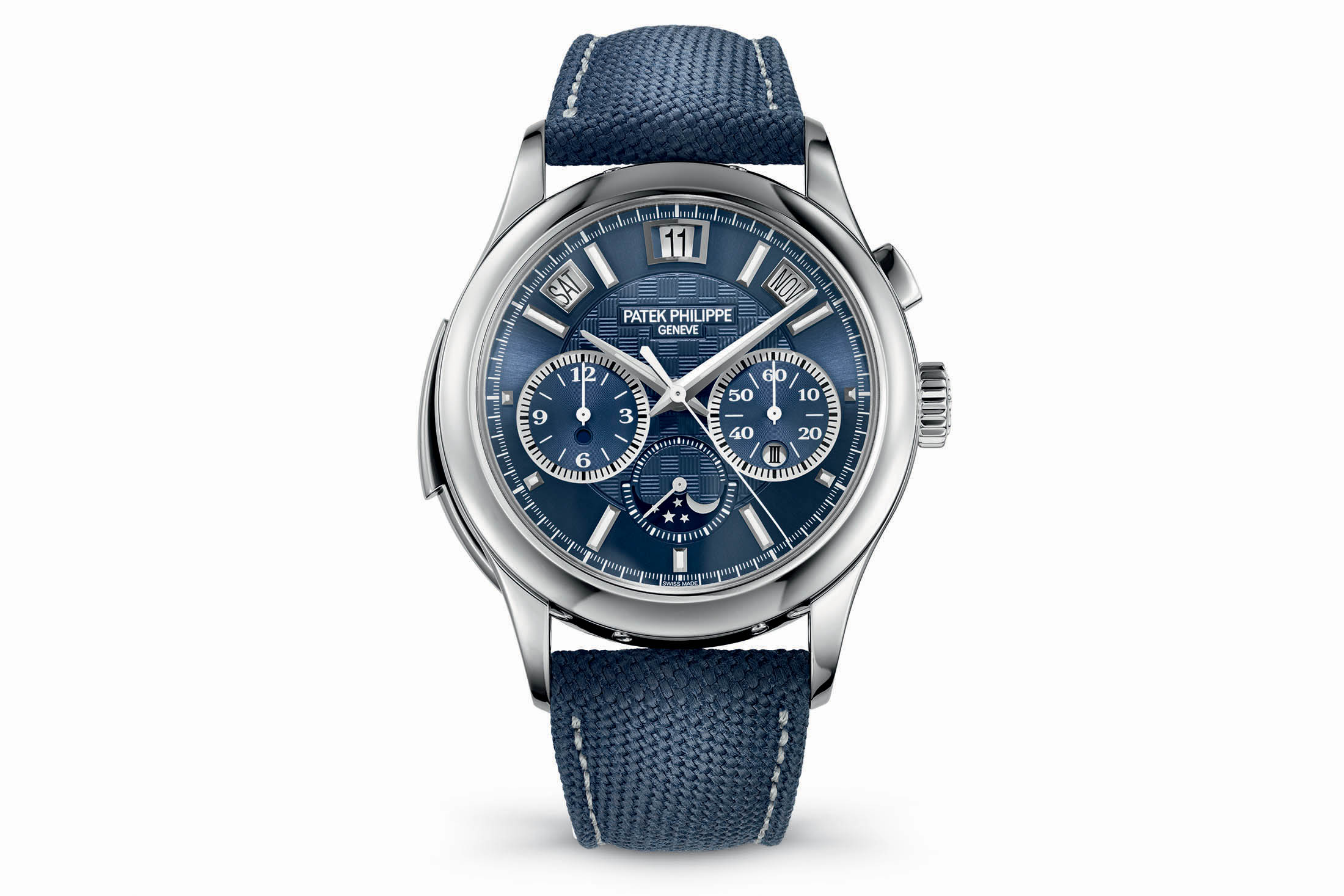这款百达翡丽5208T是为2017年Only Watch慈善拍卖制作的钛金表。摄影师:Jean-Daniel Meyer/百达翡丽这款非常复杂、独一无二的钛金手表具有报时功能、瞬时万年历和单按钮计时功能。蓝色碳纤维表盘经过手工雕刻,背面有蓝宝石水晶显示。拍卖的赢家还获得了参观品牌工作坊和与百达翡丽总裁Thierry Stern的私人午餐。