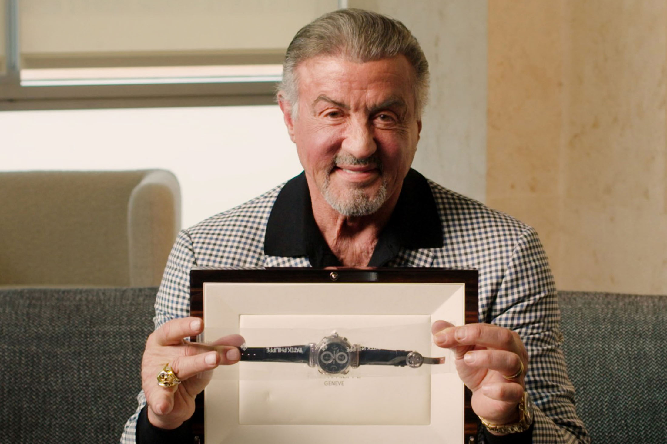 史泰龙与他的百达翡丽大师鸣响在其展示盒中。来源:苏富比但这场拍卖的明星,无可争议地是,一只百达翡丽大师鸣响——这是百达翡丽制造的最复杂的腕表,稀有到您必须直接向品牌的统治家族斯特恩申请才能获得一只。该手表有不同的金属和其他变体,零售价格在250万美元左右。除了一款为2019年Only Watch慈善拍卖特别制作的限量版外,之前从未有过拍卖;它以3100万美元成交。