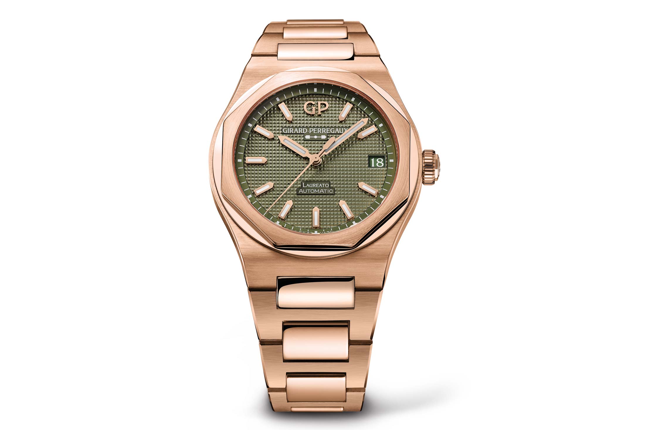 点击图片阅读我对2024年迄今为止最佳手表的总结。来源:供应商我在三月初看到了一款 吉拉德-佩尔戈 Laureato 42mm 粉金表,它的鼠尾草绿色表盘在五月之前是保密的,所以我不能谈论它。然而,玫瑰金和绿色的配色组合是如此引人注目,以至于它一直萦绕在我的脑海中。接下来的一个月里,我看到的都是它。