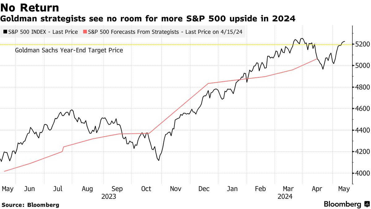 这也是该银行自去年底发布预测以来,第二次上调标准普尔500指数盈利预测和年末价格目标的原因之一。该公司首次将503个成分股的基准预测从原来的4700上调至5100,然后又提高到5200。高盛还将今年的每股收益预测上调至241美元和2025年的256美元,之前为237美元和250美元。