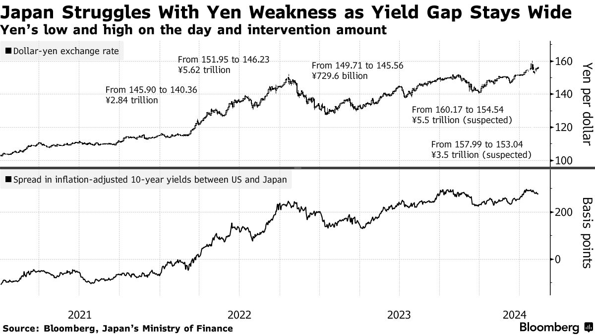 日元疲软和美元强势的核心在于两国中央银行利率之间的巨大差异。近期抛售的推动因素是美国通胀的持续迹象以及美联储官员对近期削减基准利率的前景的抵制。