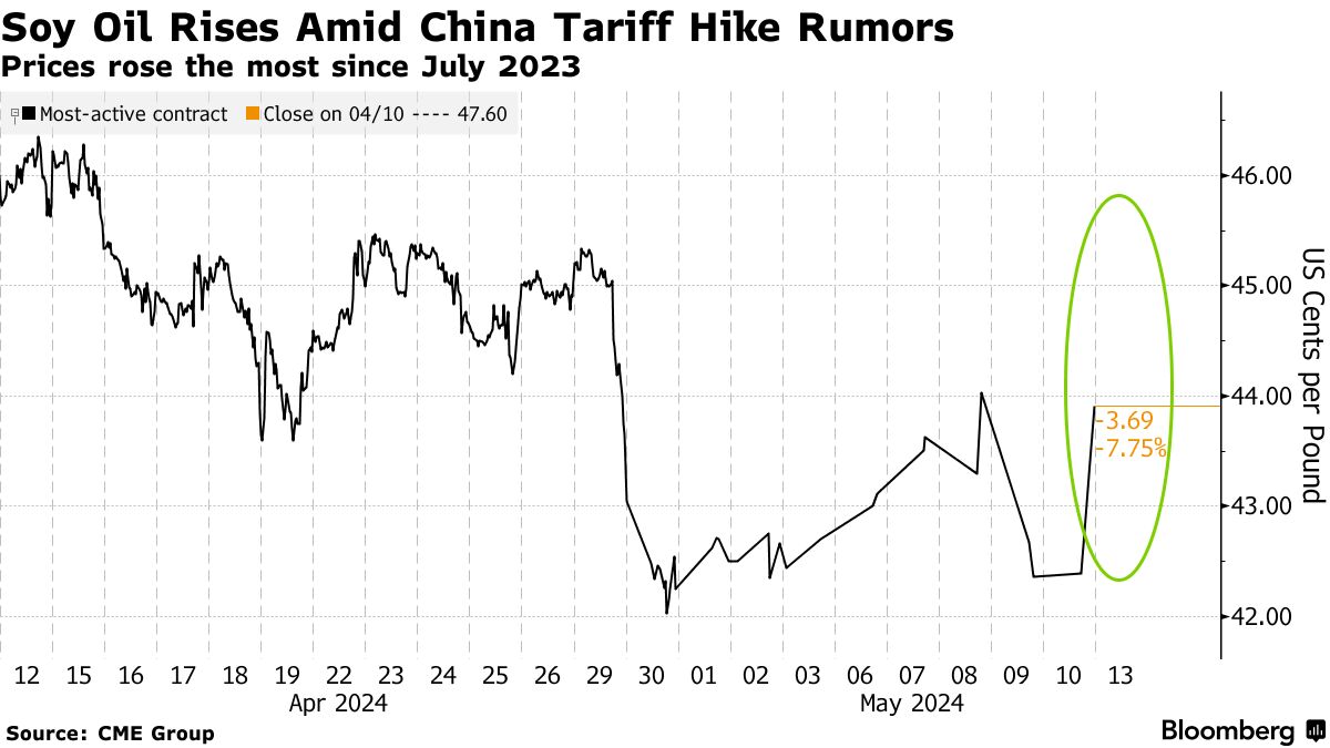 随着总统乔·拜登准备对中国实施新一轮关税,美国大豆贸易组织正在推动对中国使用过的食用油征收更高的税率,他们表示这正在削弱用于生物燃料的美国农作物。