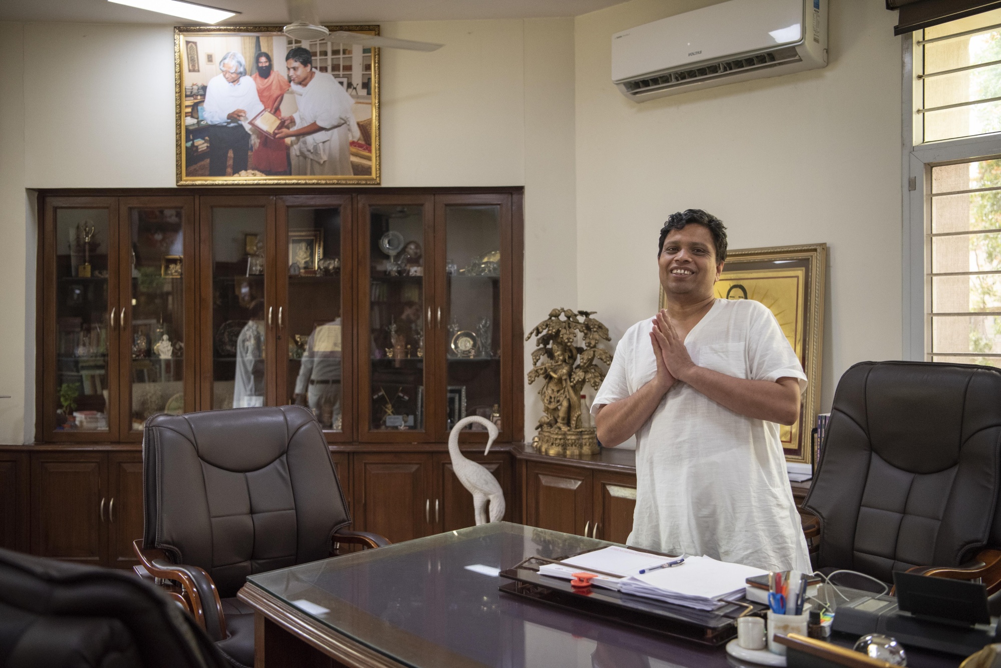 阿查里亚·巴尔克里希纳,2021年帕坦伽利阿育吠陀有限公司的董事总经理。摄影师:索姆亚·坎德尔瓦尔/Redux在2019年,他的公司收购了破产的大豆块制造商鲁奇索亚工业公司,现在称为帕坦伽利食品有限公司,其股票自那时以来大幅上涨。巴尔克里希纳的资产还包括六个宗教电视频道,包括阿斯塔电视网络——印度版的上帝电视。