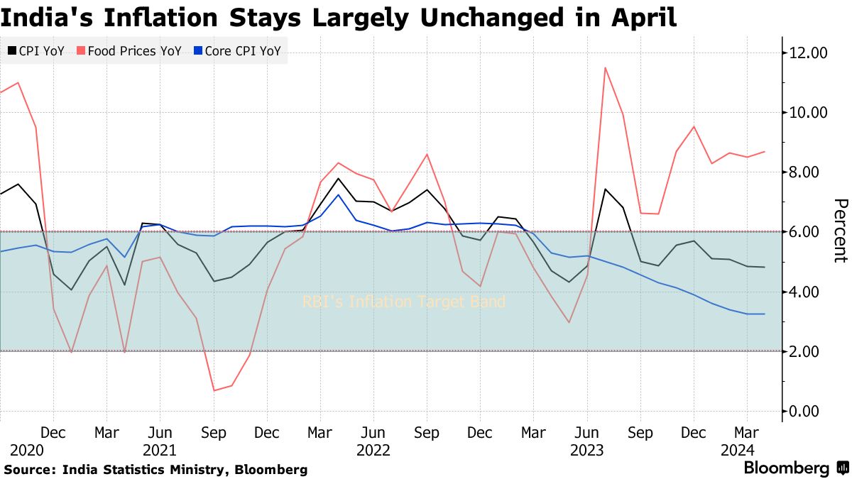 “等待到八月进行立场变化将有助于印度储备银行避免任何对利率削减的早期市场定价,更好地了解季风和全球货币政策动态,”花旗集团经济学家萨米兰·查克拉博提和巴卡尔·扎伊迪在一份报告中写道。他们预计七月和八月的通胀数据将远低于4%,主要由于基数效应,为中央银行采取行动提供了更有利的背景。