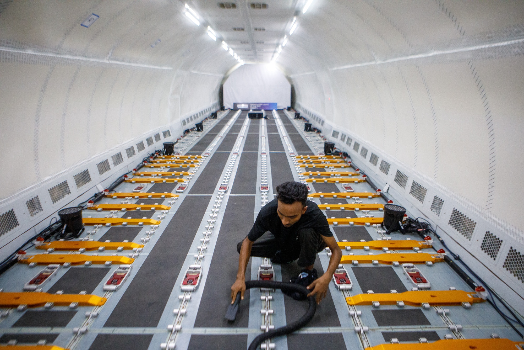Teleport 的空客 A321 货运飞机内部。摄影师:Samsul Said/Bloomberg阅读更多:Capital A 的 Teleport 在收入增长中获得货运飞机