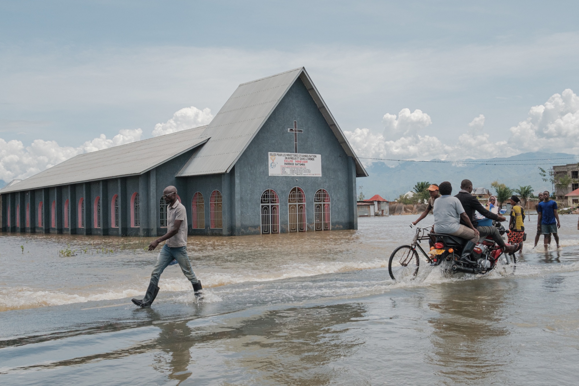 对于一些年轻而强壮的人来说,洪水创造了另一个商业机会。人们愿意以1,000布隆迪法郎($0.35)的价格将穿着得体的市民背在背上,以防他们踩到泥巴。