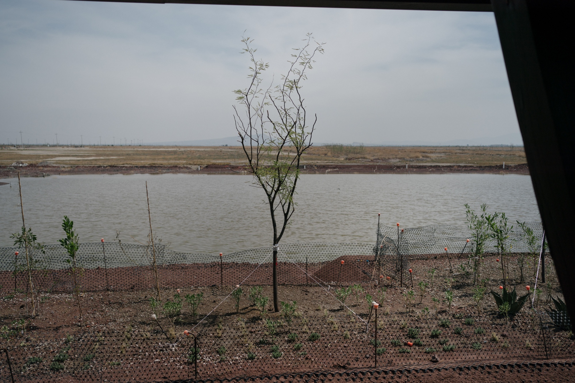 自2022年以来,工作人员用红色特宗特尔(从附近山丘开采的多孔火山岩)装饰了咸水湖床,这些材料是由于停工的机场而遗留下来的。该材料被重新利用来建造一个水保持池塘和运河系统,这些池塘和运河将作为野生动物栖息地、雨水蓄水池和在致命炎热城市中的凉爽岛屿。池塘的深度经过校准,以管理水的积累:虽然每年大约有一米的水因蒸发和土壤吸收而损失,但多保留一点水可以产生累积效应,埃切维里亚说:“我们的口号是尽可能多地带回水。”