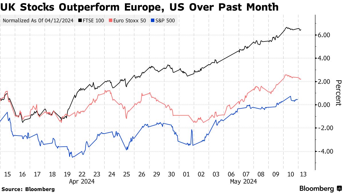 在过去一个月中,FTSE 100以美元计价上涨了约5%,这超过了欧洲的Stoxx 50和美国的S&P 500的涨幅,但几乎没有迹象表明它即将减弱。