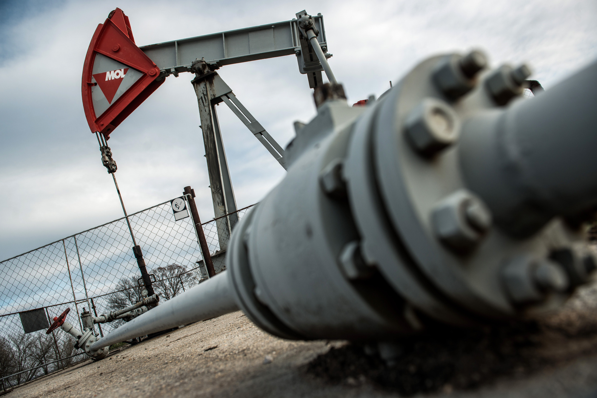 在MOL匈牙利石油和天然气公司的油泵站,抽油机正在工作。摄影师:Akos Stiller/Bloomberg