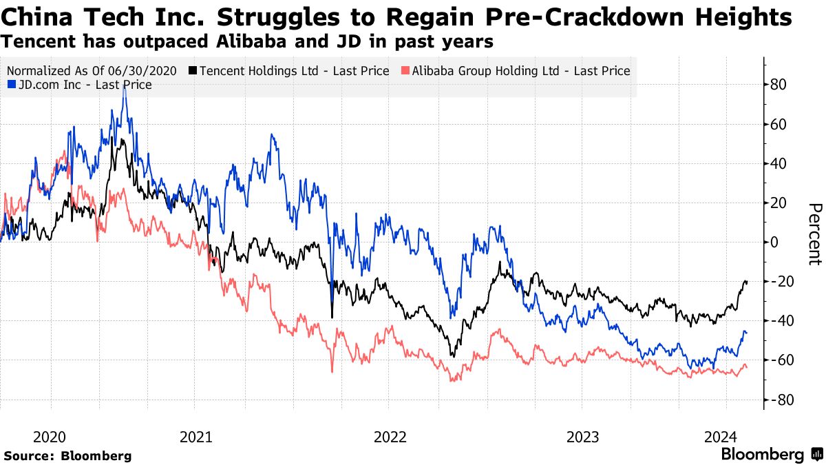 阿里巴巴再次失利,而腾讯则在复苏中不断发展 - 彭博社
