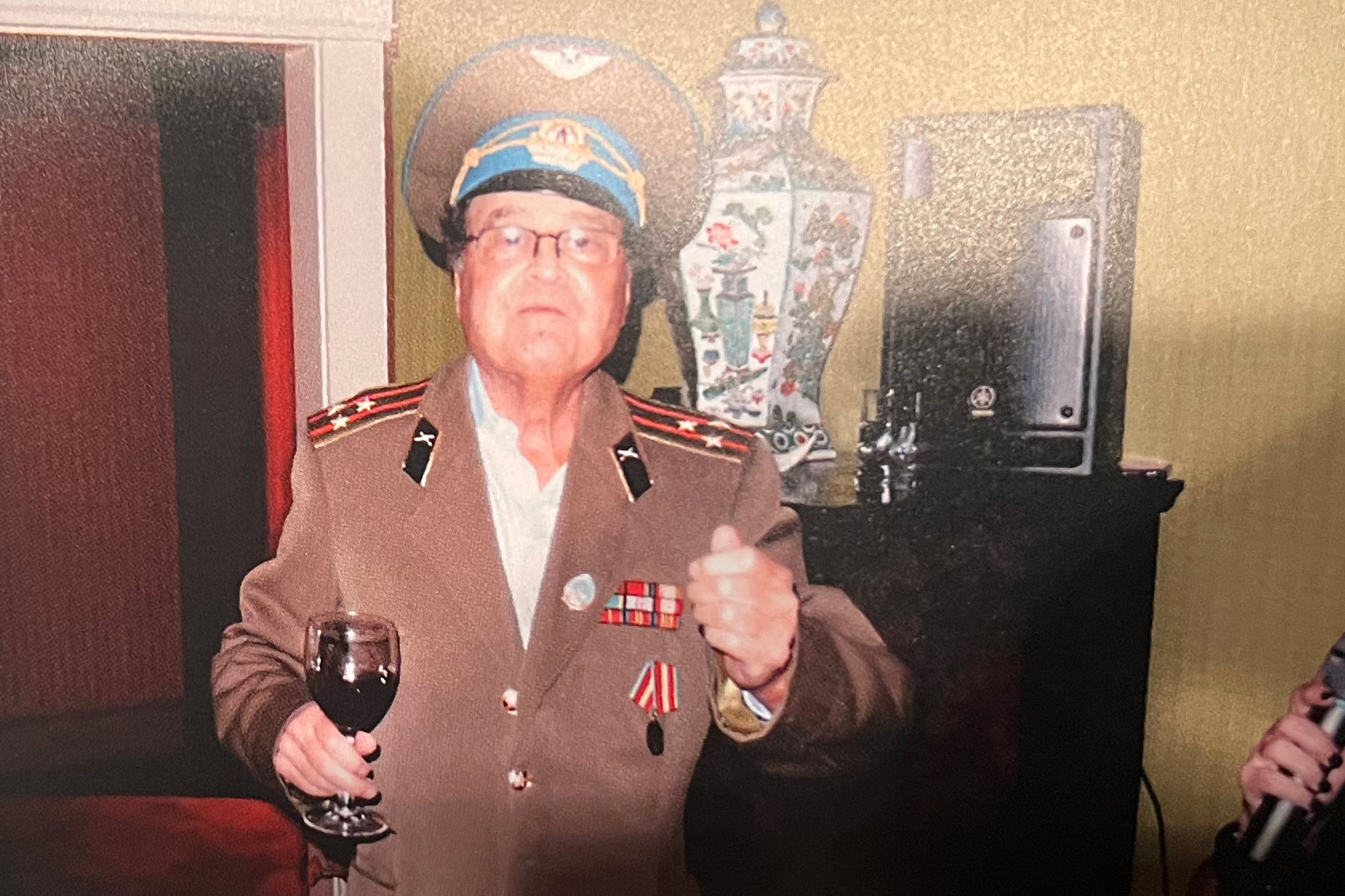 恩格尔翻开一本相册,看到一张他穿着苏联将军服装的照片。摄影师:海瑟·佩尔伯格/彭博社所以,很明显:唐·恩格尔有故事要讲。而且不是华尔街想要重温的那种故事。