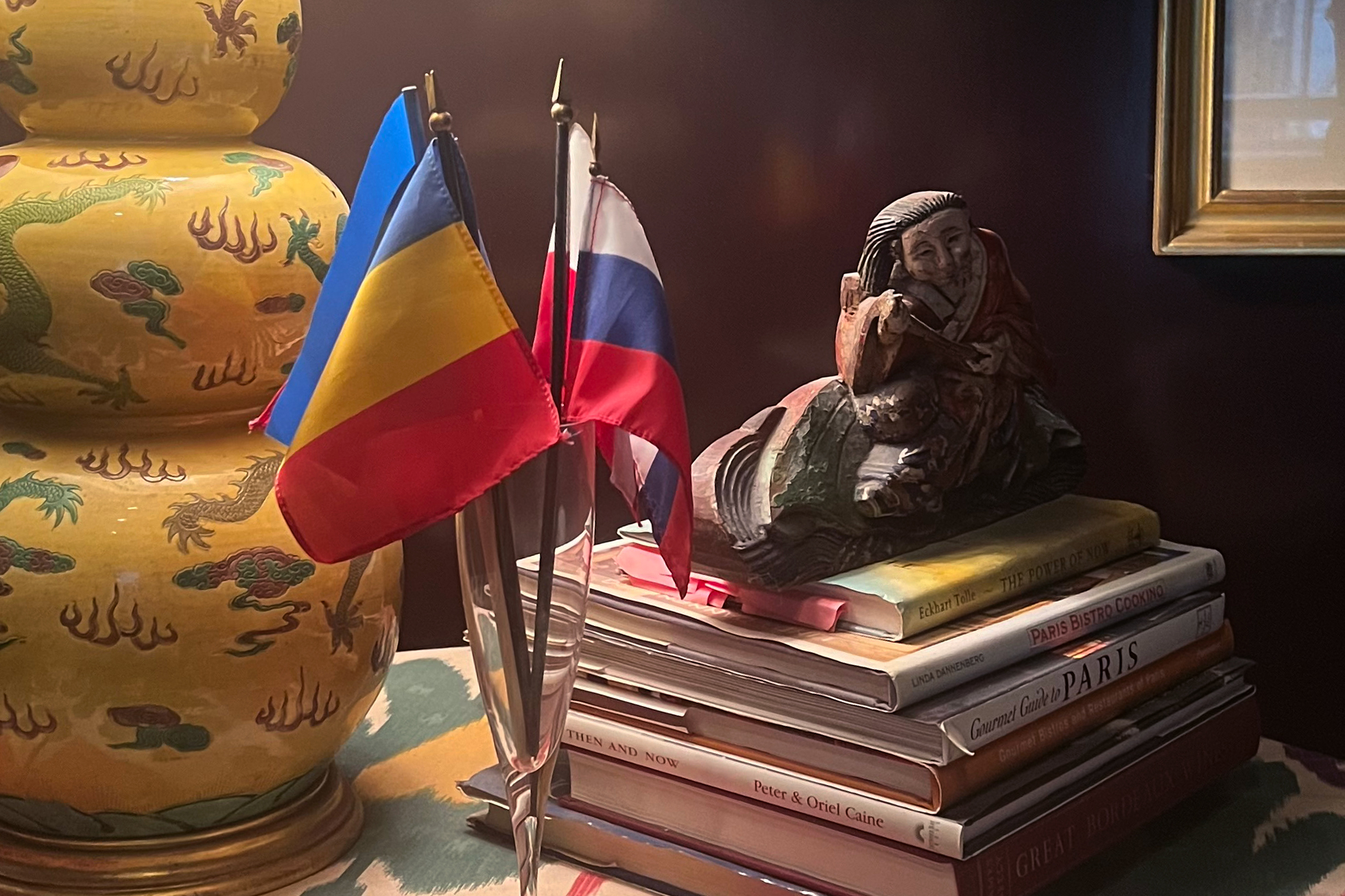 这些旗子——来自爱沙尼亚、波兰、罗马尼亚、俄罗斯——像情人玫瑰一样被放在香槟杯中。它们代表了他曾有过“插曲”的女性,恩格尔微笑着说。多年来,他为自己和曼哈顿的富有熟人“联络”了许多来自东欧的女性。