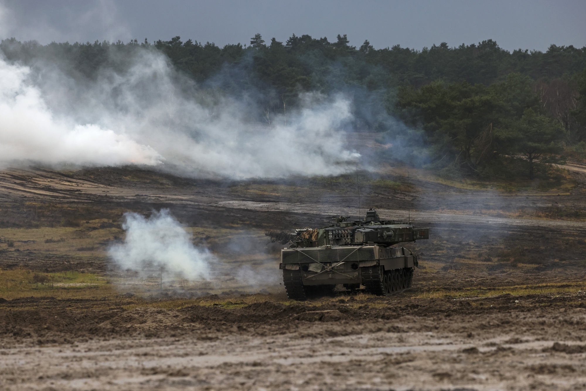 一辆Leopard 2 A6战车,于2023年2月在德国奥古斯特多夫进行现场射击演示,目的地是乌克兰。摄影师:Alex Kraus/Bloomberg但他确实创造了一个术语 — Zeitenwende,即时代性变革 — 用来描述俄罗斯的侵略对德国意味着什么。结果证明,这比听起来更难实现,涉及颠覆战后在安全、能源、工业和外交政策方面的假设。但如果欧洲大陆上唯一真正的巨人能够清醒过来并摆脱20世纪的阴影,对欧洲同样具有重要意义。