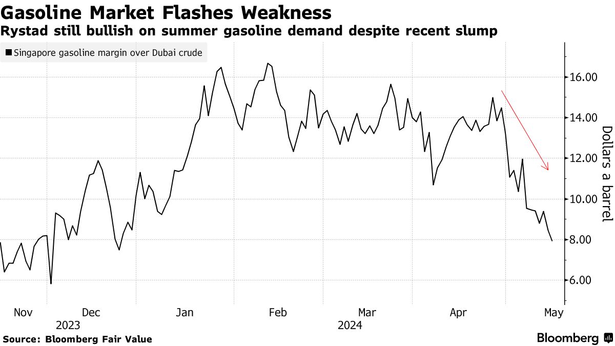 “我认为今年夏天汽油市场将保持平衡或强劲,” Rystad石油交易解决方案团队负责人Mukesh Sahdev在接受采访时表示。“美国出行活动最近的下降可能只是暂时的小幅波动。”