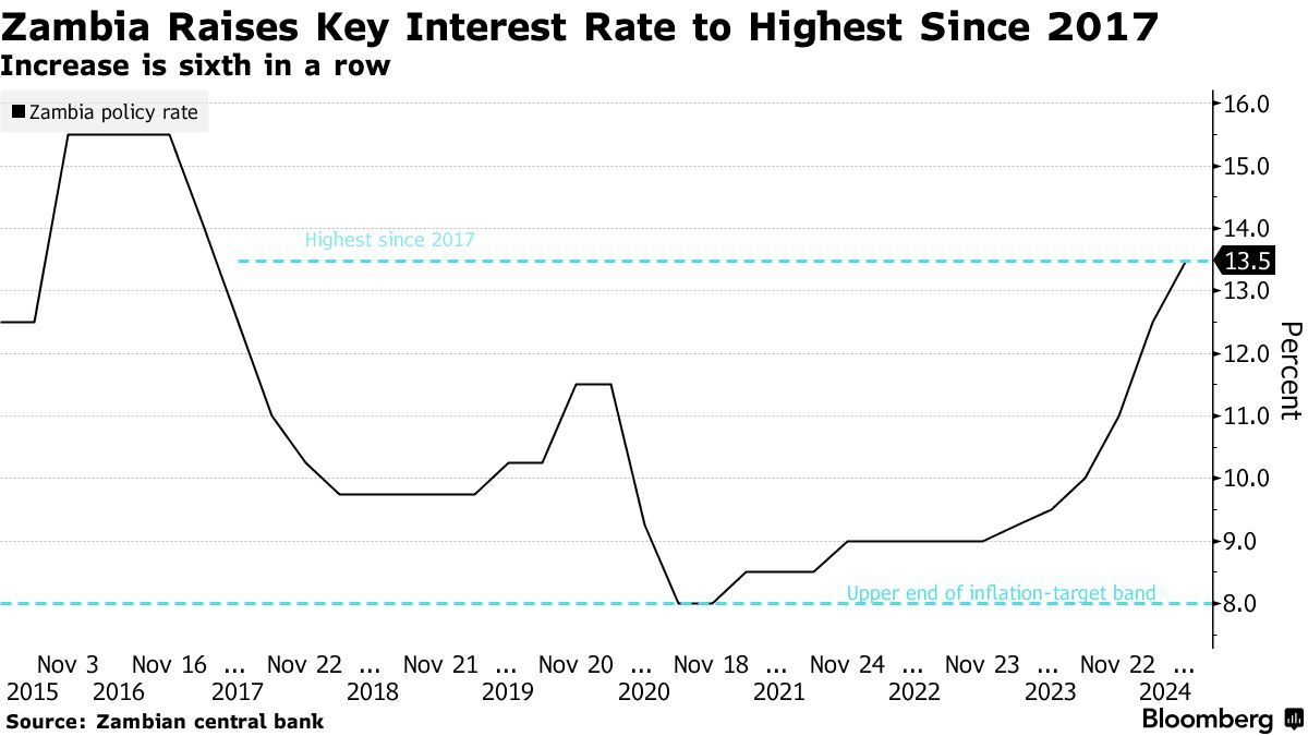 ZMW/USD货币暴跌促使赞比亚将利率提高至七年来的最高水平-彭博社