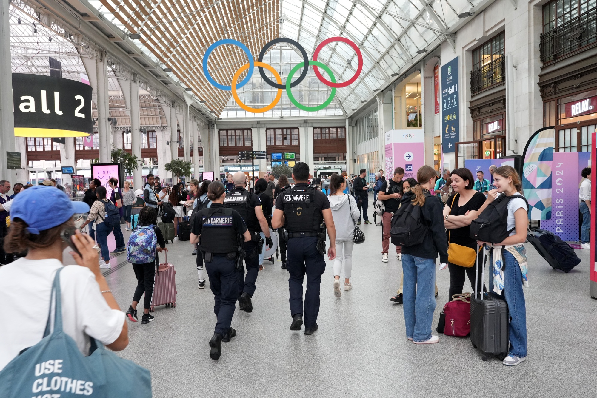 7月26日,法国巴黎里昂火车站服务中断期间,警察在巡逻。