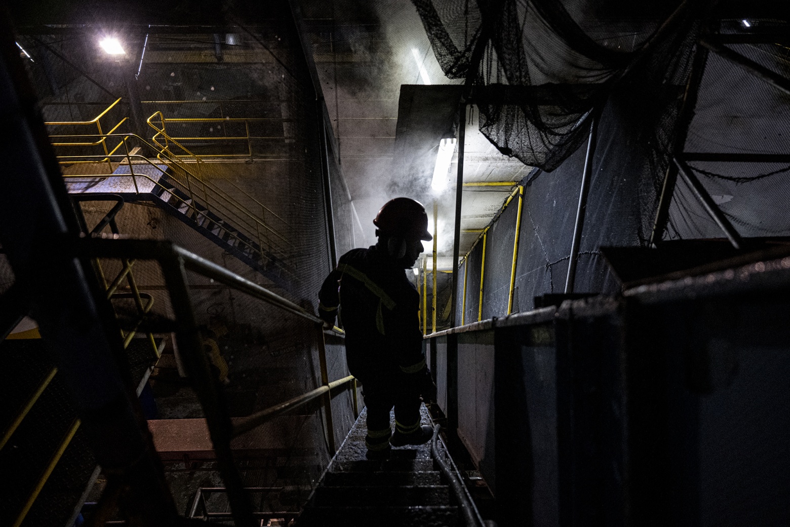一名工人在秘鲁恰恰伊的一家鱼粉工厂内监控操作。