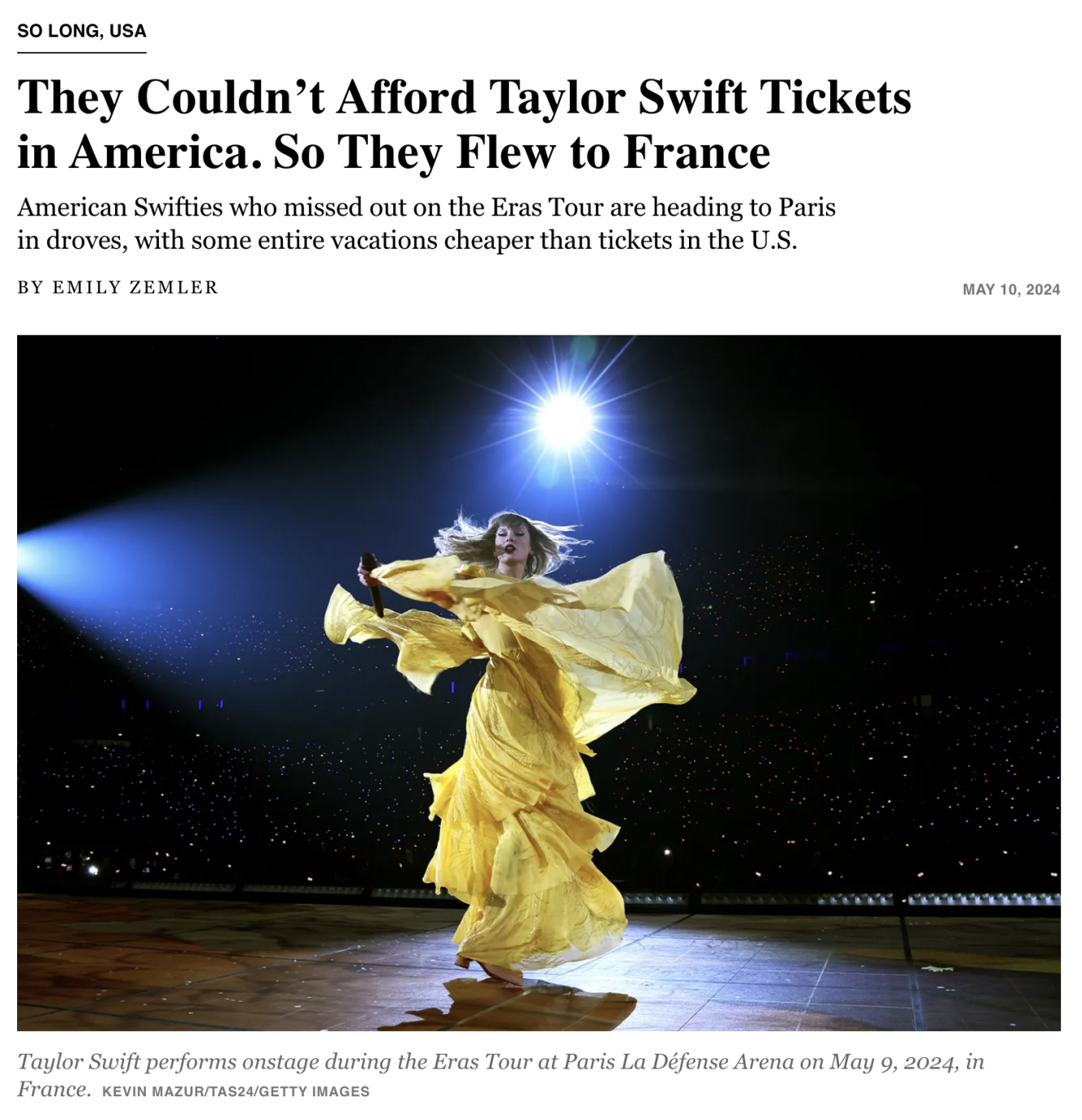 据美联社报道,美国人购买了五分之一的巴黎演出门票。而下一站斯德哥尔摩预计将有约1万名来自美国的观众参加演出——这对旅游业是一大利好,但对树木来说则是一种伤害。为了防止这种浪费行为,艾莉希试图限制票价,只允许通过Ticketmaster以原价转售门票。这是一个不完美的解决方案,但至少她在努力!