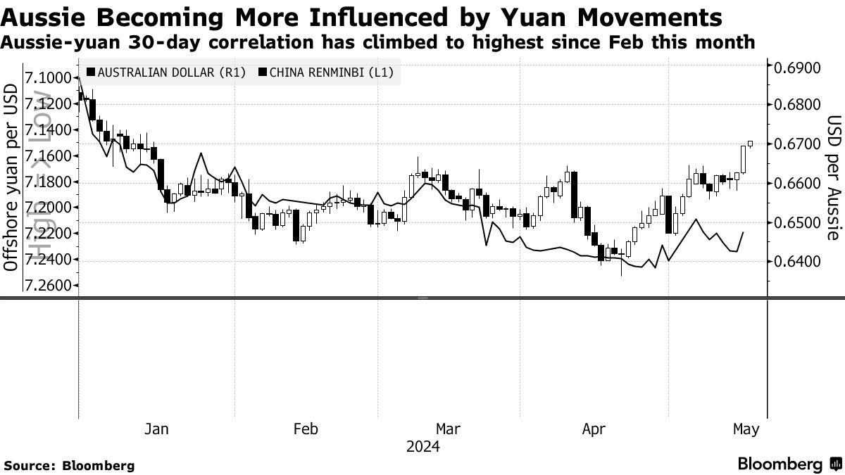 与此同时,尽管人民币贬值对澳元构成了压力,但北京对其货币的严格控制意味着下行风险可能有限。在数月的抛售压力之后,策略师们现在预测人民币的交易环境相对更为温和,因为更高的美国利率似乎已经被充分定价。